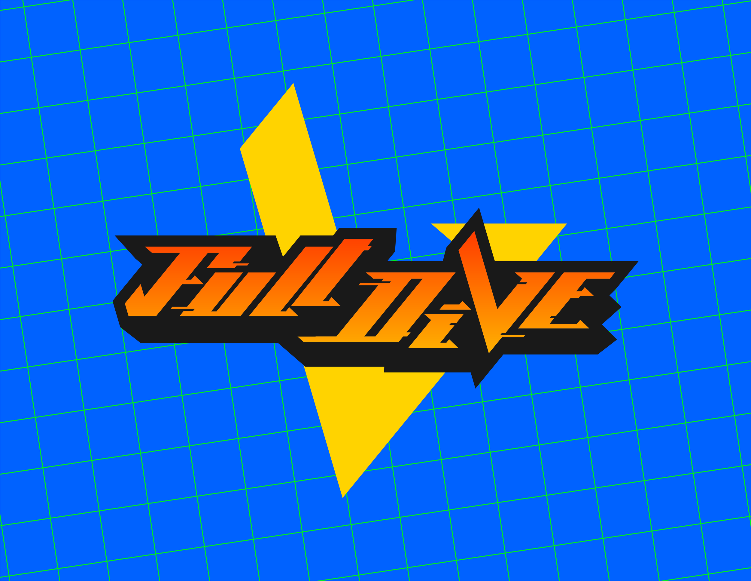 Identity and logo exploration inspired by Japanese shonen-style brand marks from the 80s and 90s for the graphic novel Full Dive written by me.